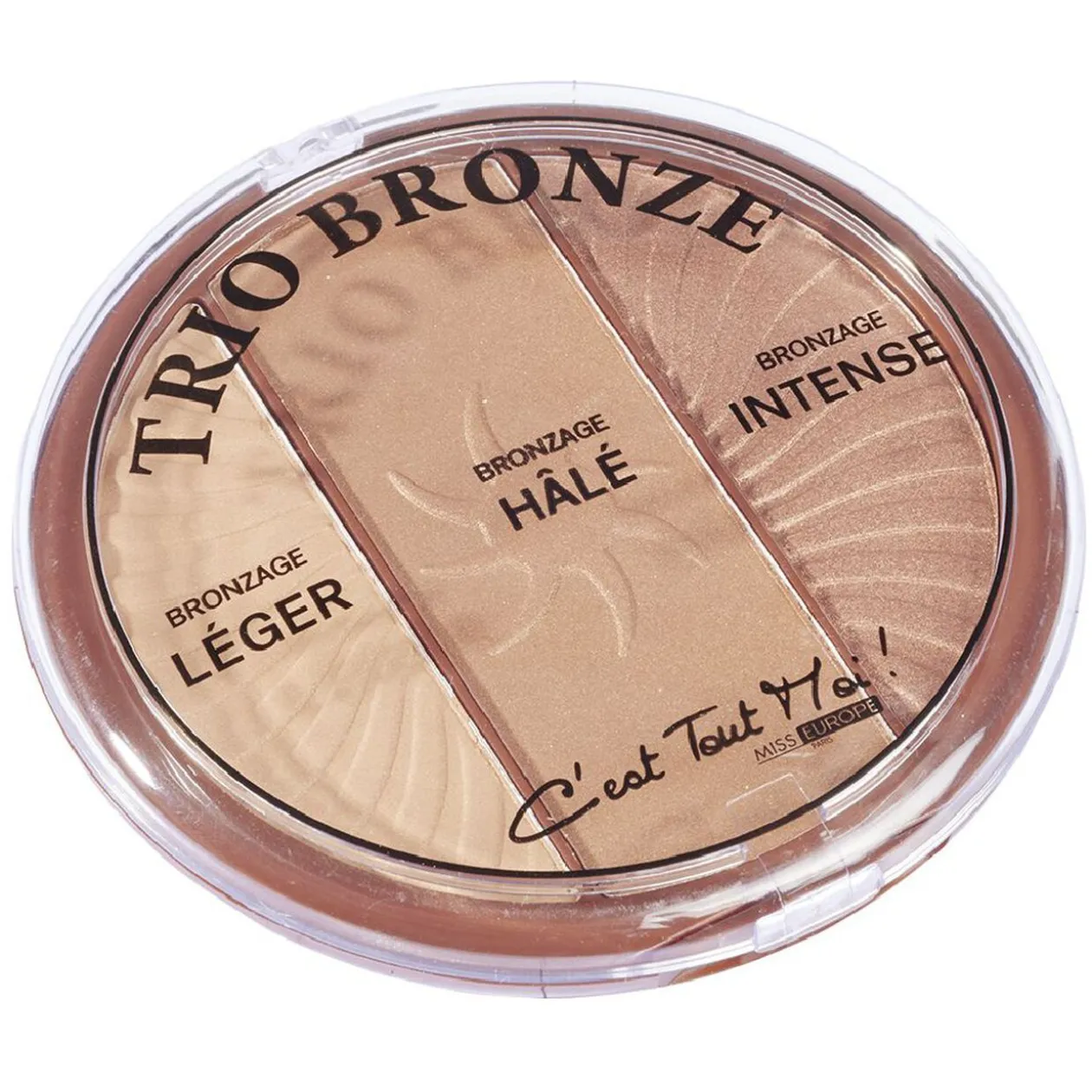 Palette C’est Tout Moi ! Miss Europe composée de 3 poudres pour un effet bronzant léger, hâlé ou intense, à ajuster selon votre niveau de bronzage et de clarté de peau.