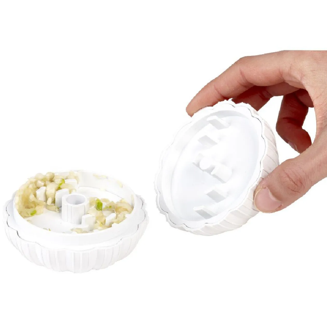 Presse ail avec boîte fraîcheur, dim. 7,5×7,5×5 cm, plastique.
