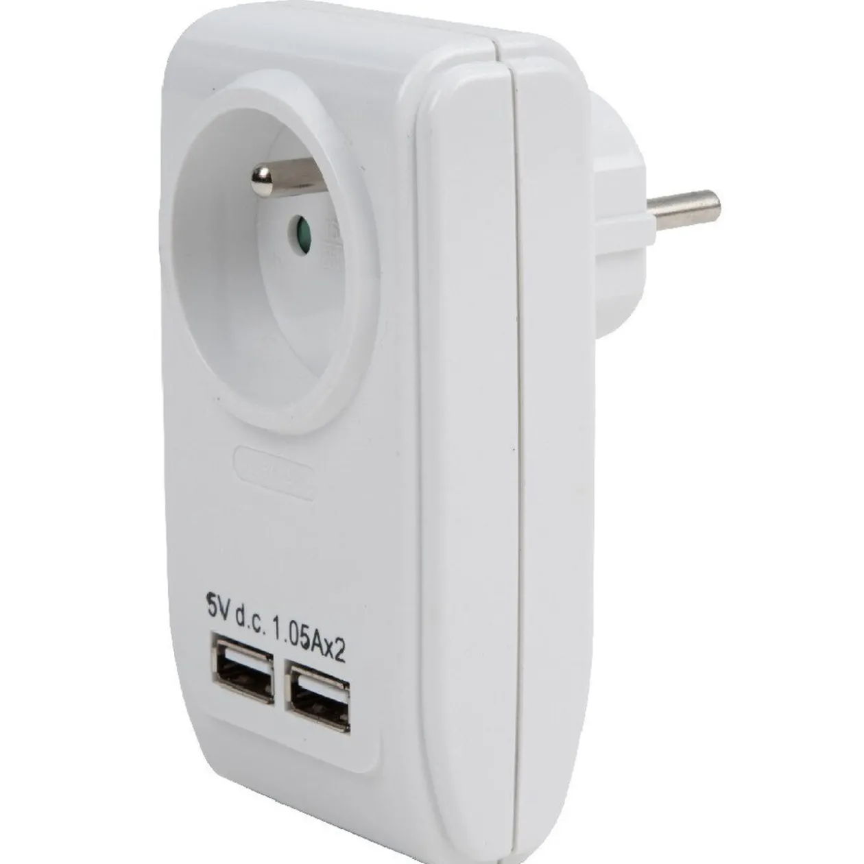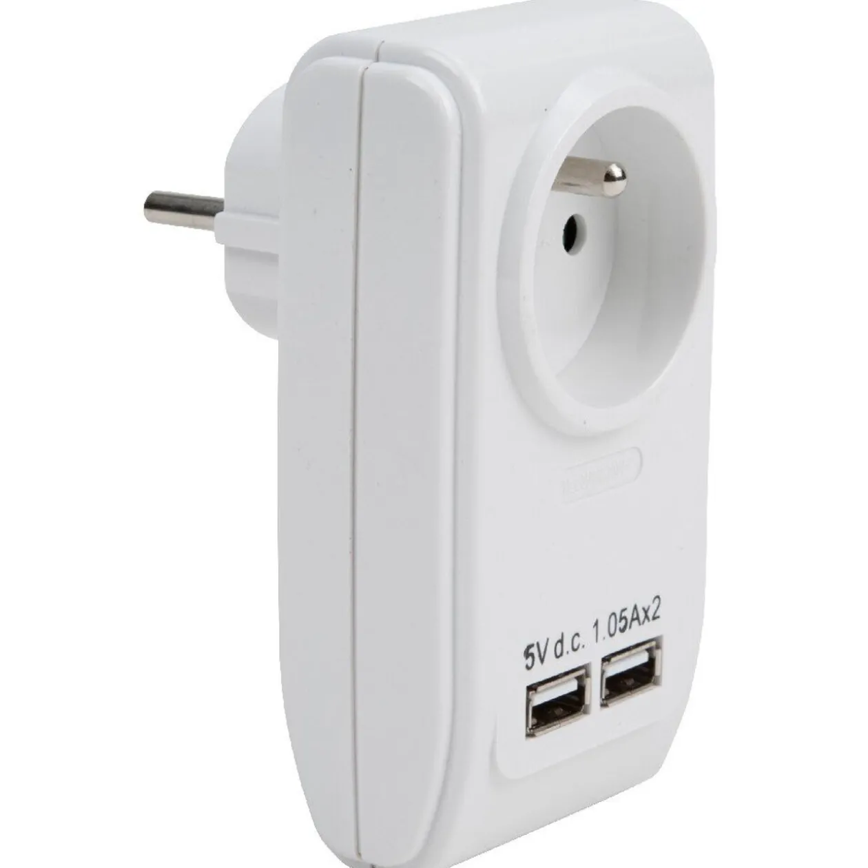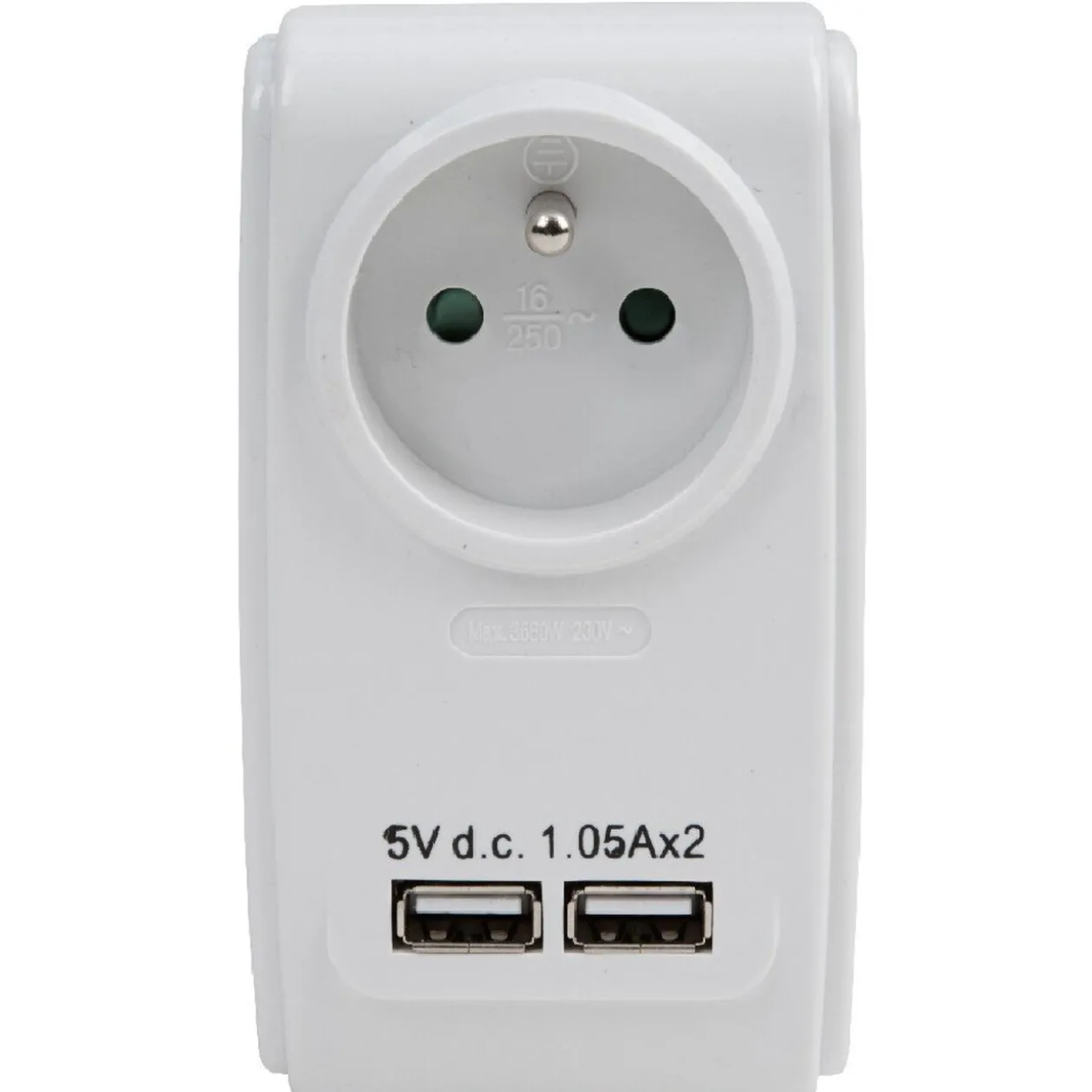 Prise chargeur 1x 230V et 2 ports USB, dim. 20x15x8 cm, polypropylène..