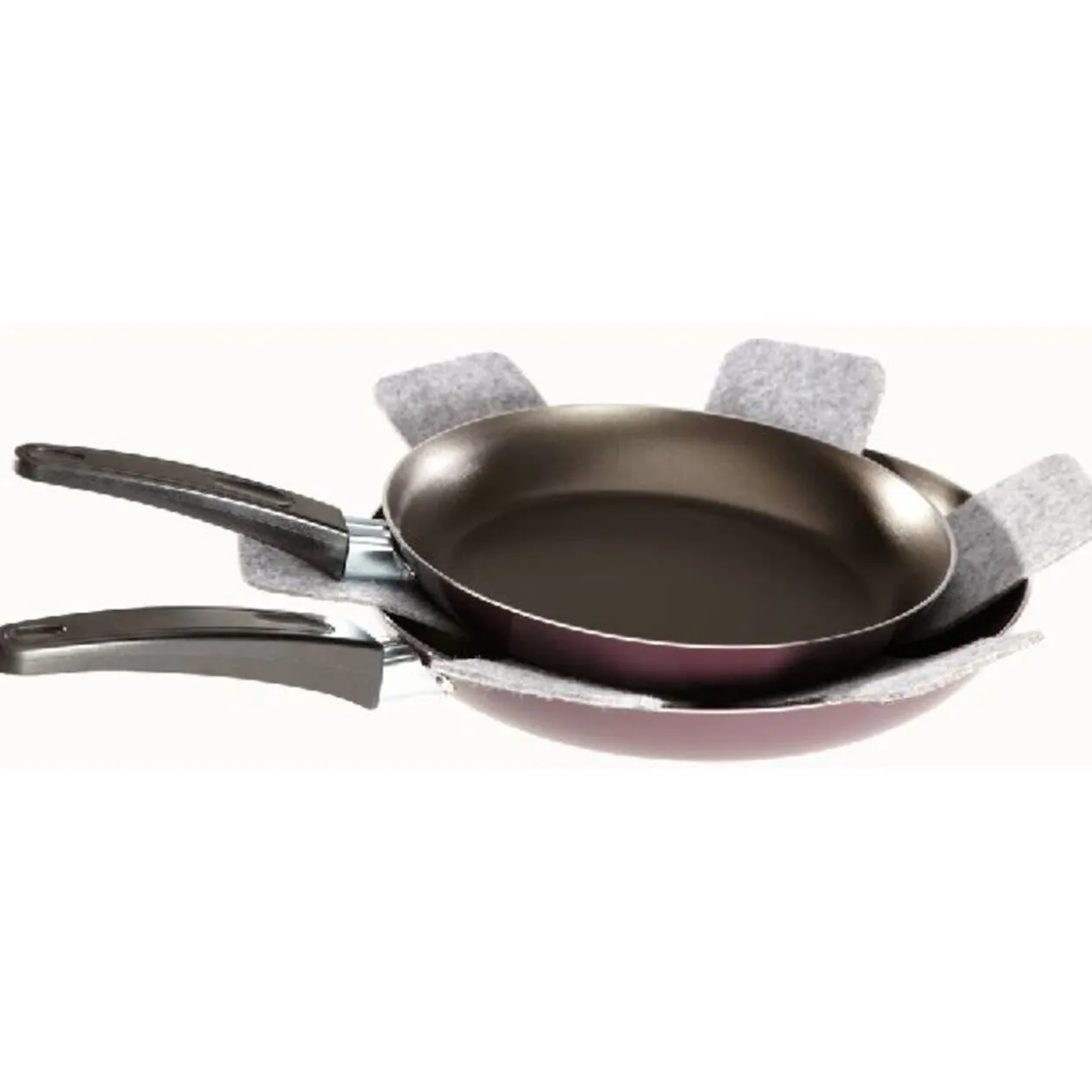 2 protections anti-rayures poêles, casseroles… L.37 cm, universelles, feutrine. Diff. modèles et coloris, disponibilité selon arrivage.
