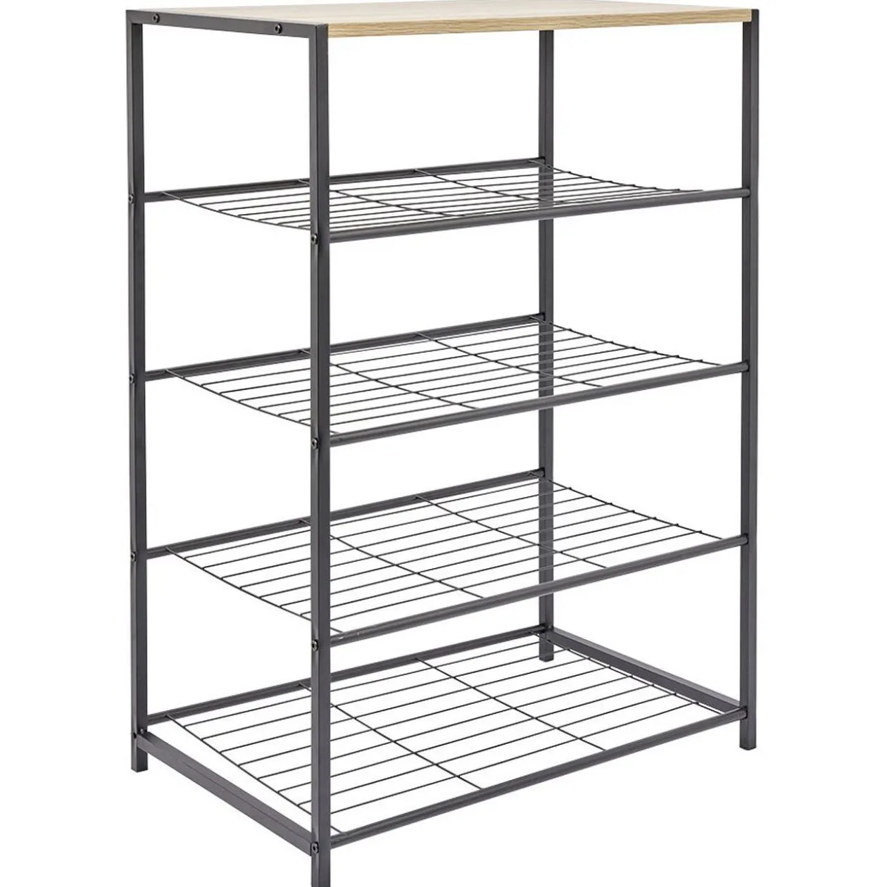 Pratique et esthétique, vous pourrez ranger jusqu’à 12 paires de chaussures sur les 4 niveaux inférieurs et disposer divers accessoires sur le plateau supérieur.