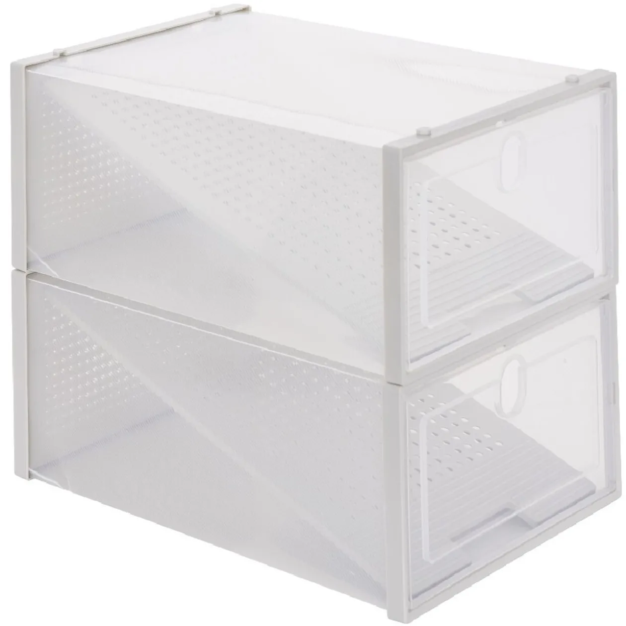 Ordonnez votre coin chaussures avec ce lot de 2 compartiments en plastique transparent.