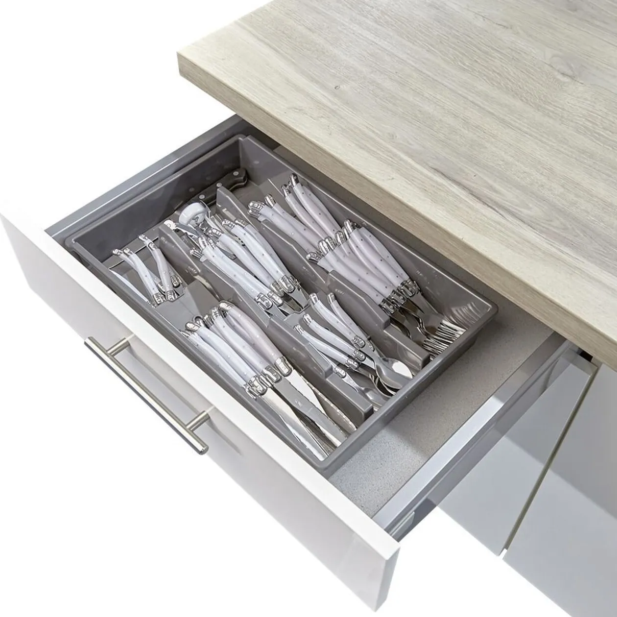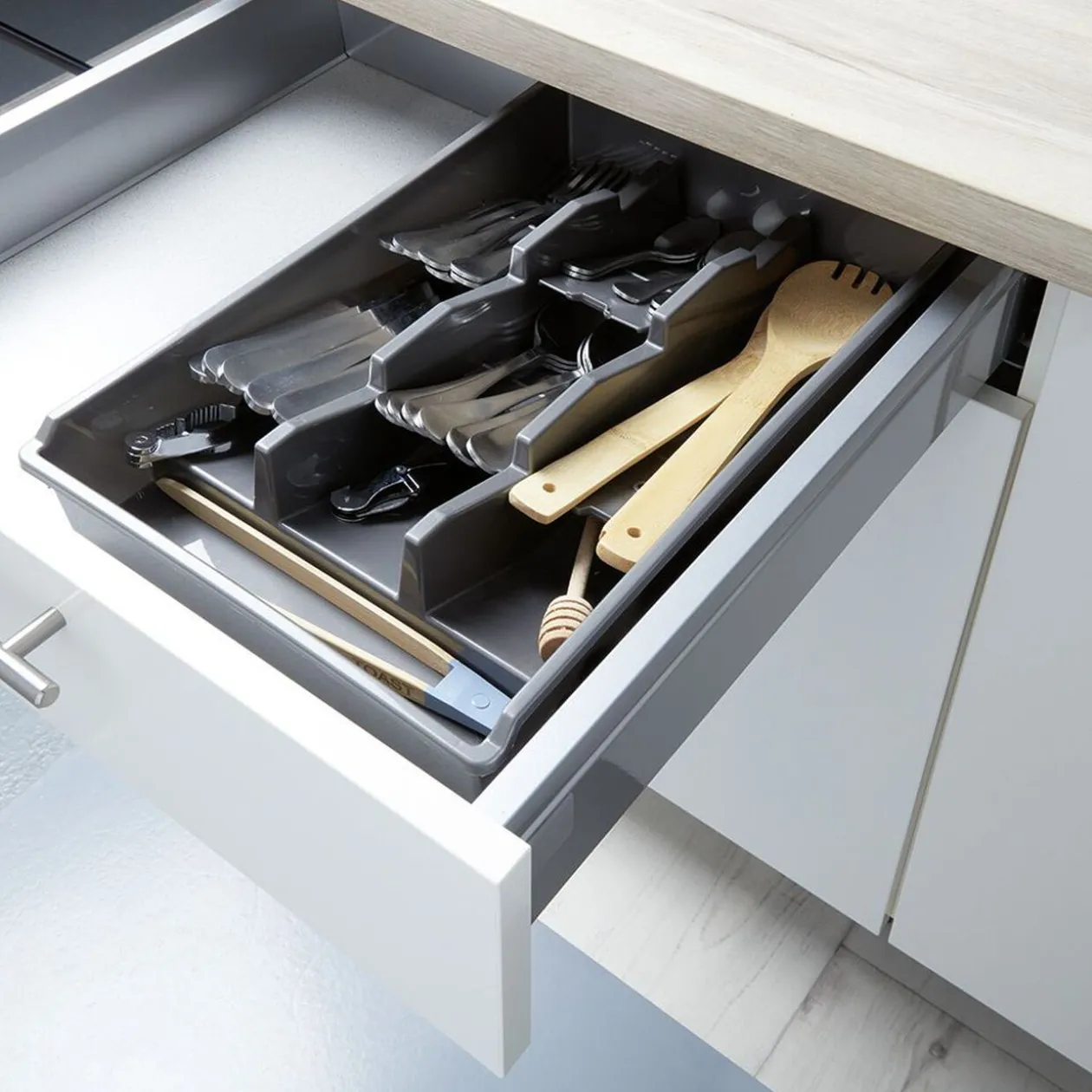 Optez pour ce bac de rangement malin à superposition des couverts pour un gain de place maximisé.