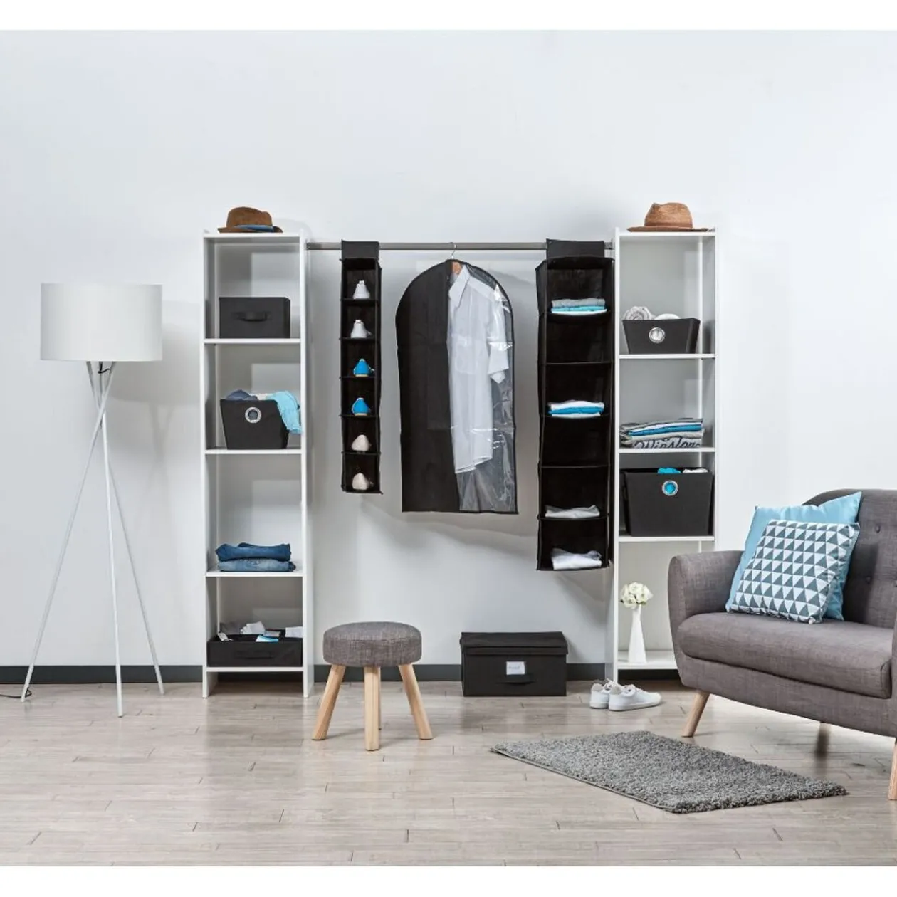 Ce rangement en tissu noir composé de 16 compartiments est idéal pour organiser vos sous-vêtements, chaussettes, foulards et autres accessoires.