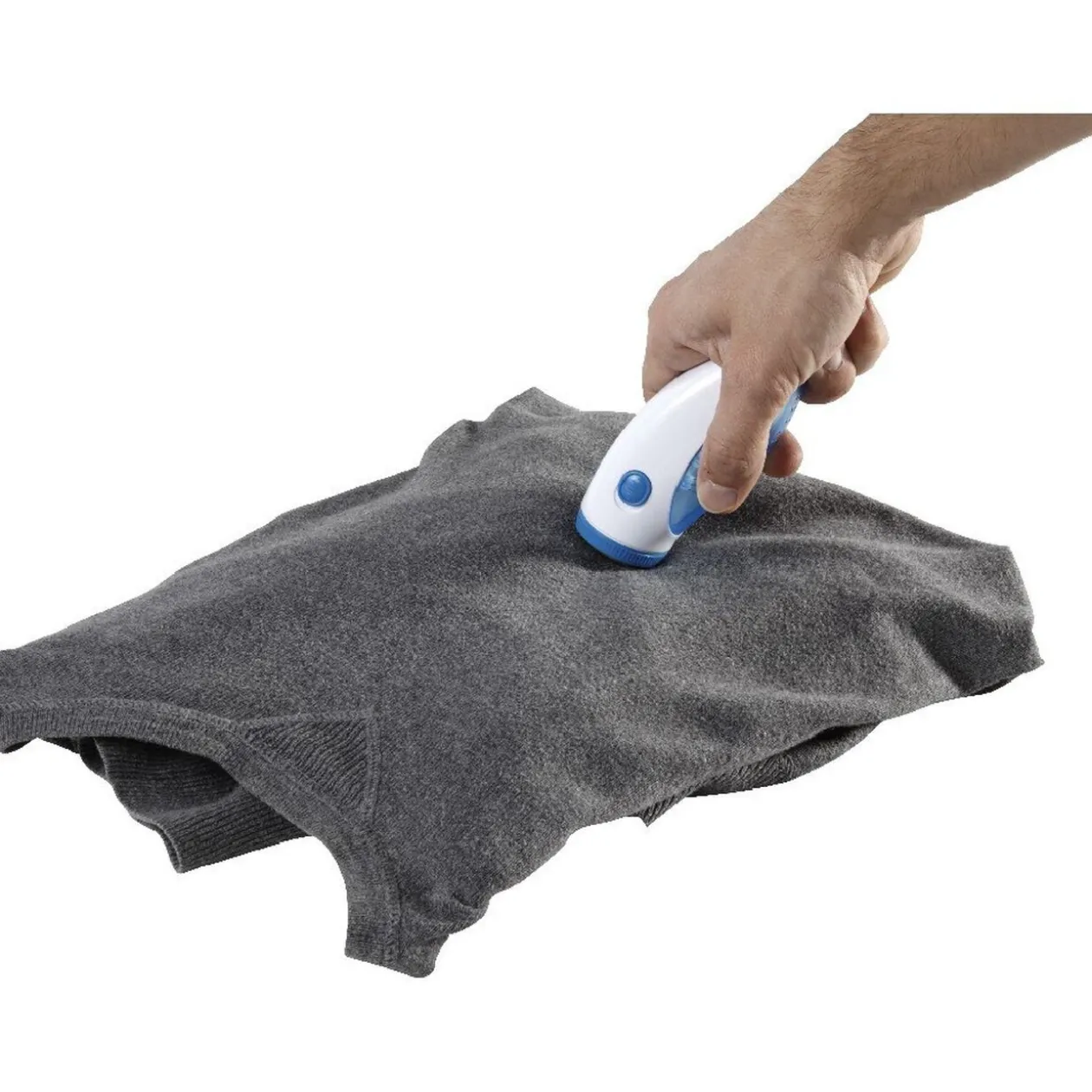 Rasoir antipeluche électrique, dim. 11×4,5 cm, plastique. Pour tout type de textile, bac de récupération de peluches amovible, nettoyage pratique.