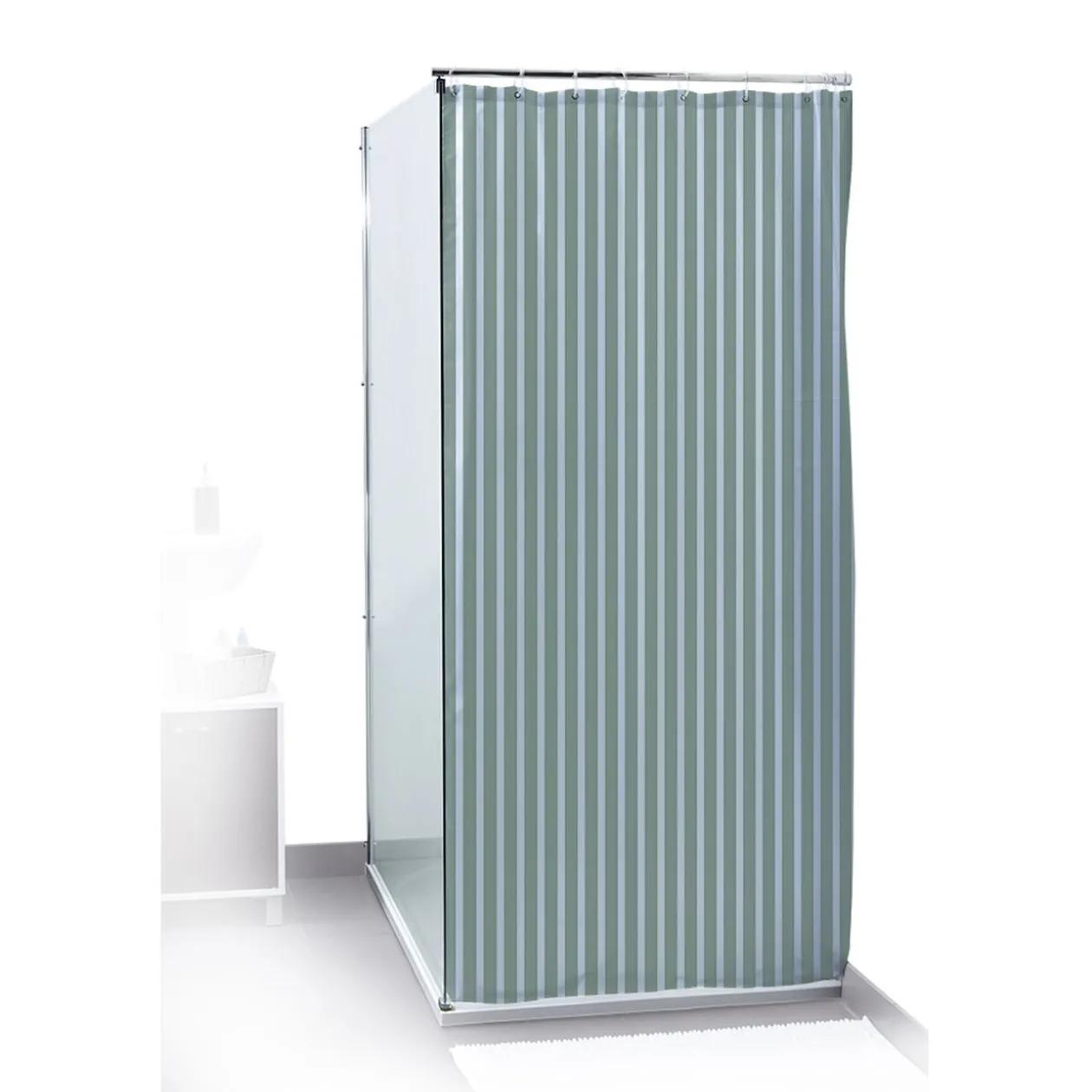 Inspiration marine pour ce rideau de douche rayé blanc et bleu.