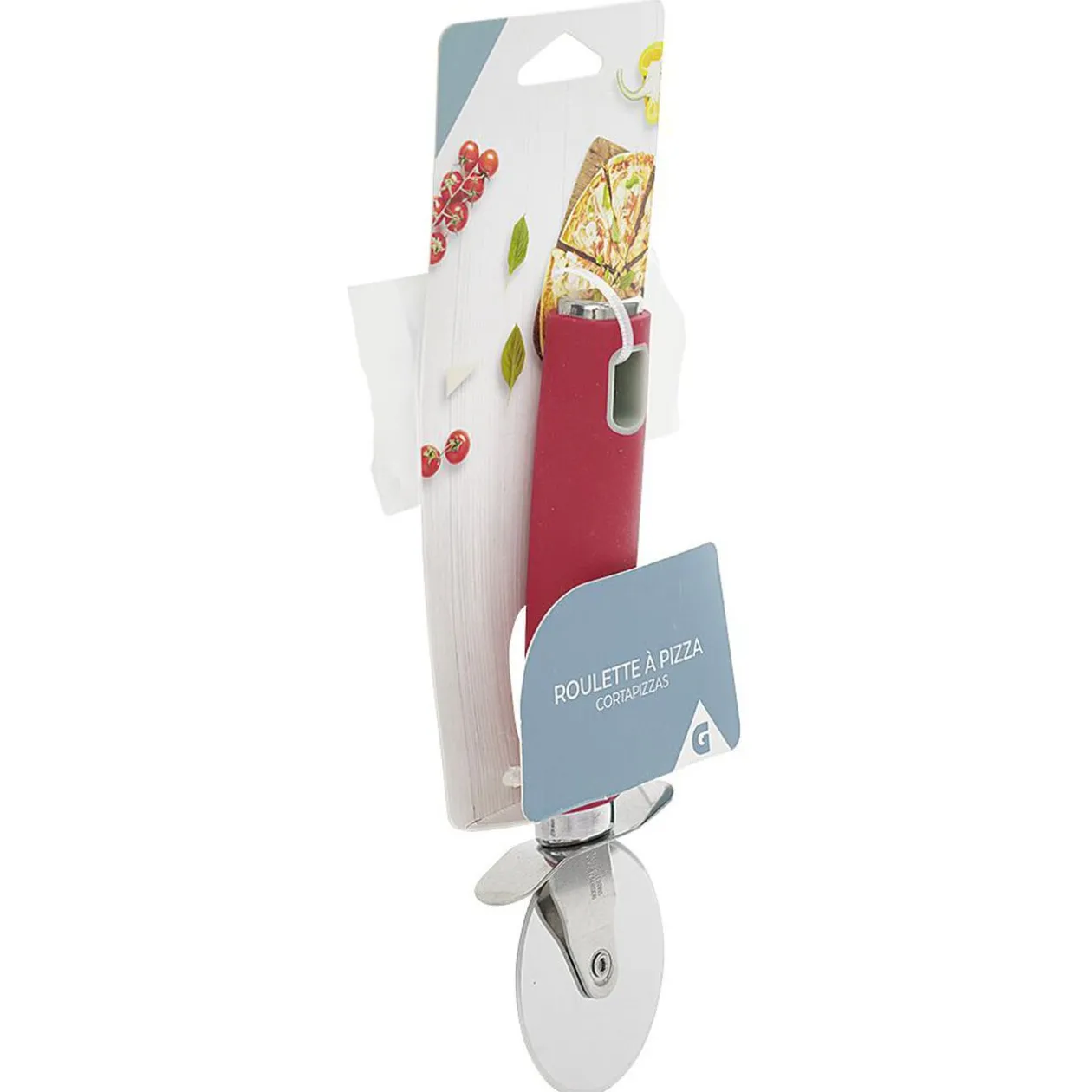 Roulette à pizza en inox avec manche ergonomique en polypropylène rouge.
