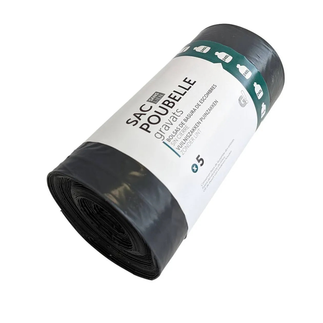Lot de 5 sacs à poubelle anti-fuite d’une contenance de 240 L.