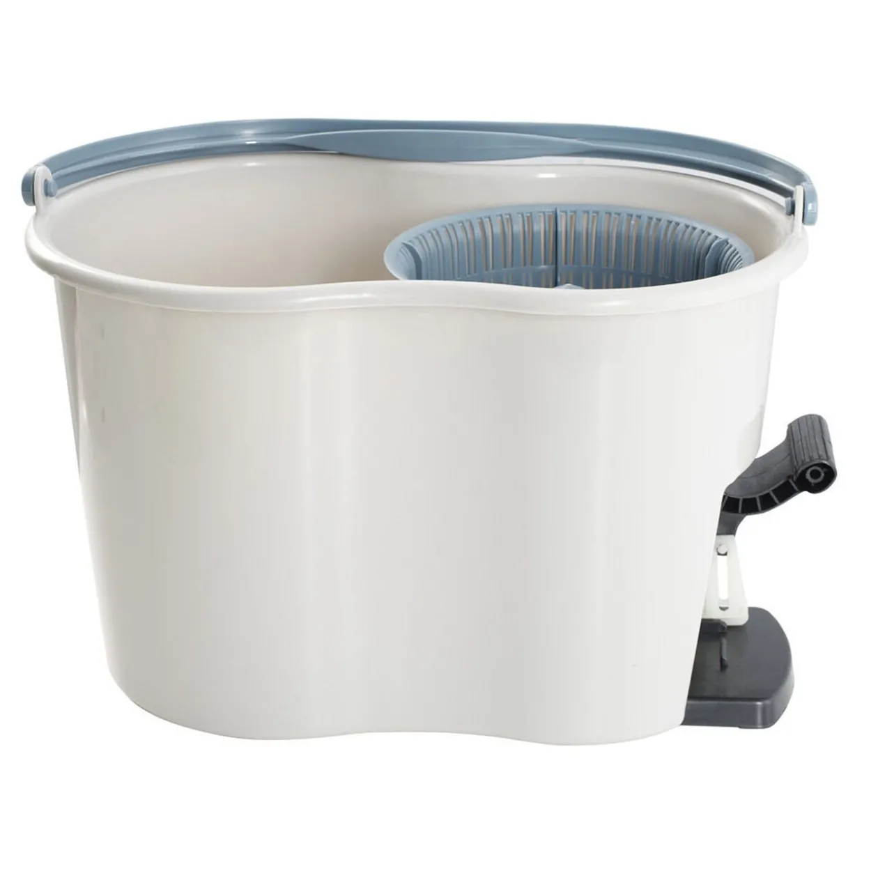 L’ensemble comprend le seau essoreur en plastique d’une contenance de 8L et le balai serpillère ou mop.