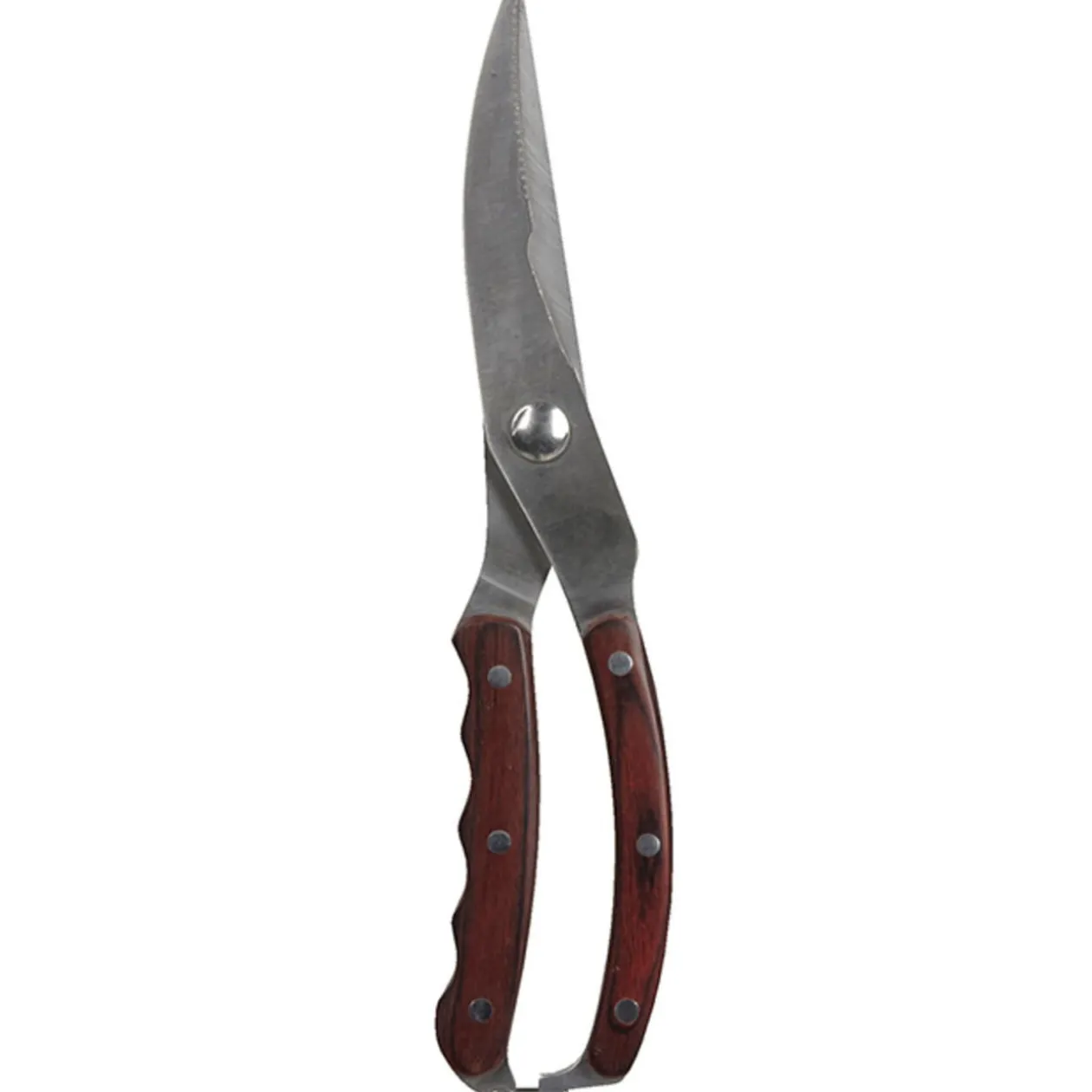 Sécateur volaille, dim. 26,5×5 cm, inox, manche en bois.