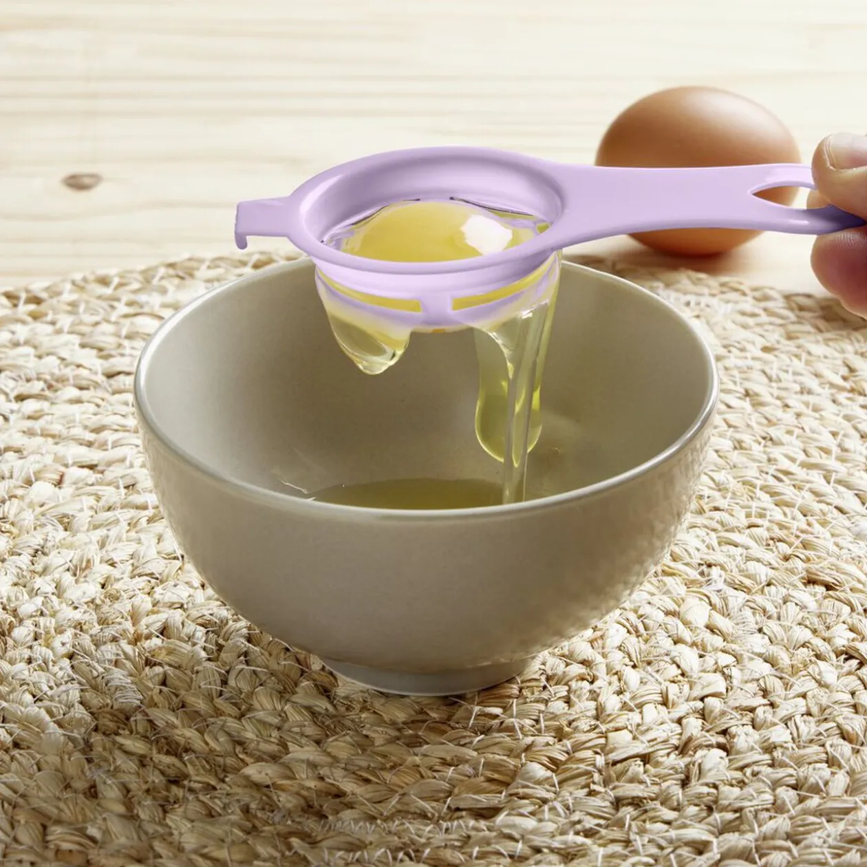 Facilitez la préparation de vos recettes avec ce séparateur de blanc d’oeuf en plastique conçu pour une utilisation simple et efficace.