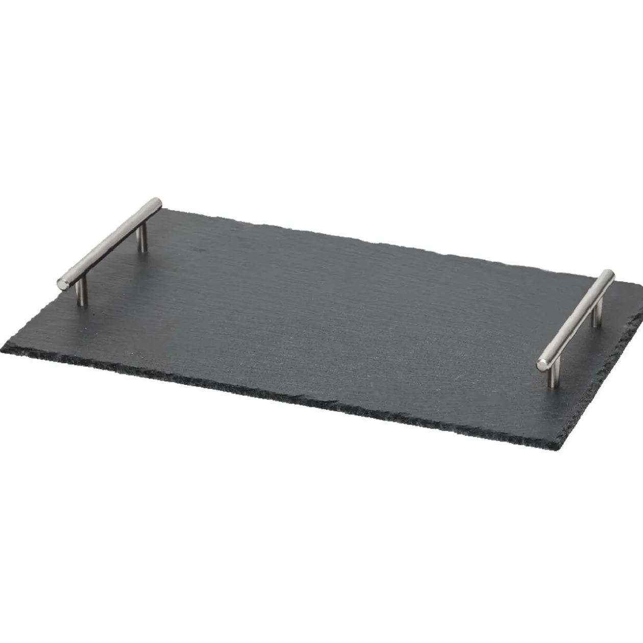 Le service à fromages haut de gamme pour vos repas. Avec ce superbe plateau en ardoise, proposez différentes variétés de fromages à vos convives et servez-les facilement grâce à ses 2 anses. Indiquez les noms de vos produits laitiers grâce aux 3 porte-noms inclus pour un effet chic et bistrot garanti.