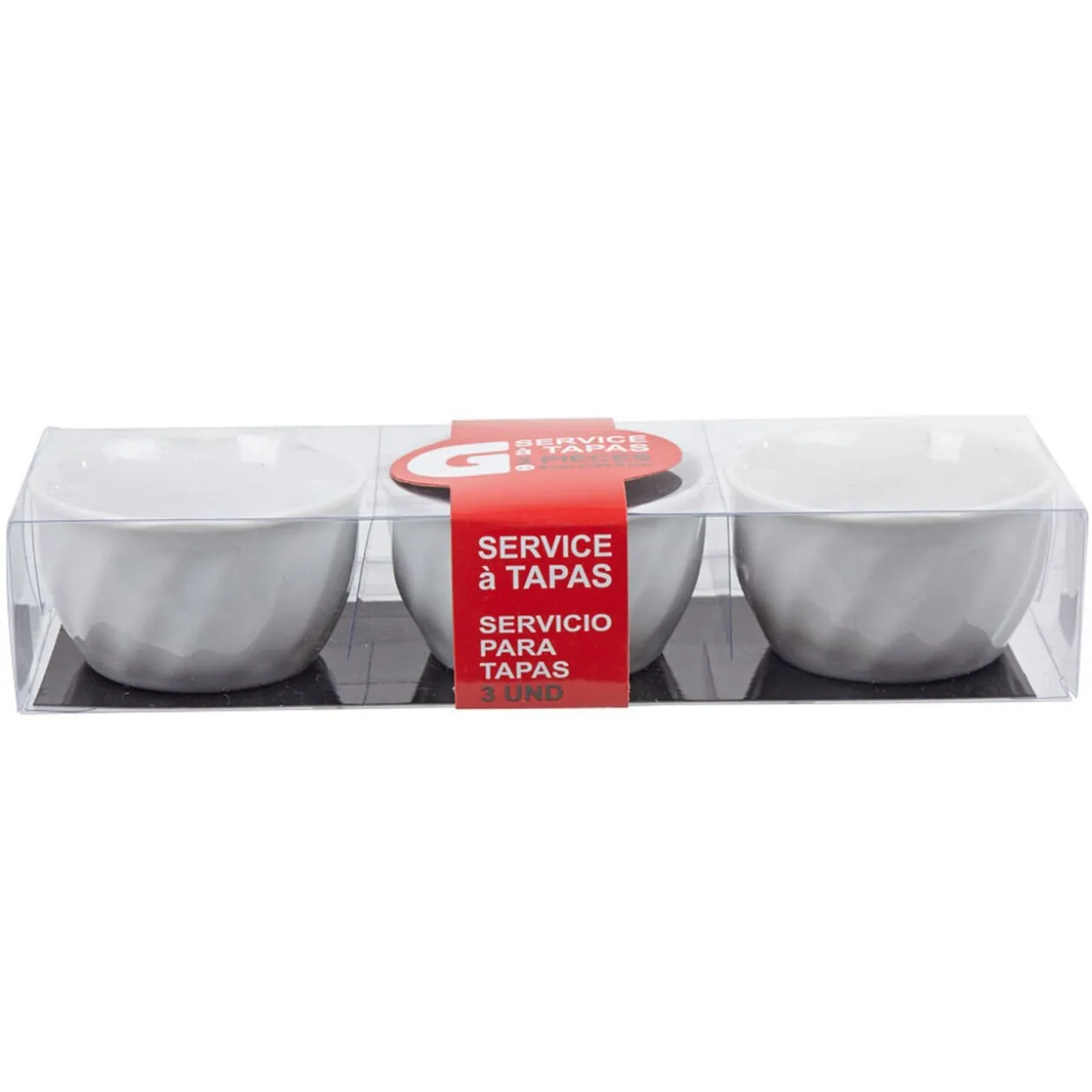 Service à tapas 3 pièces blanc à rainures verticales, dim. Ø8xh.4,5 cm, porcelaine.