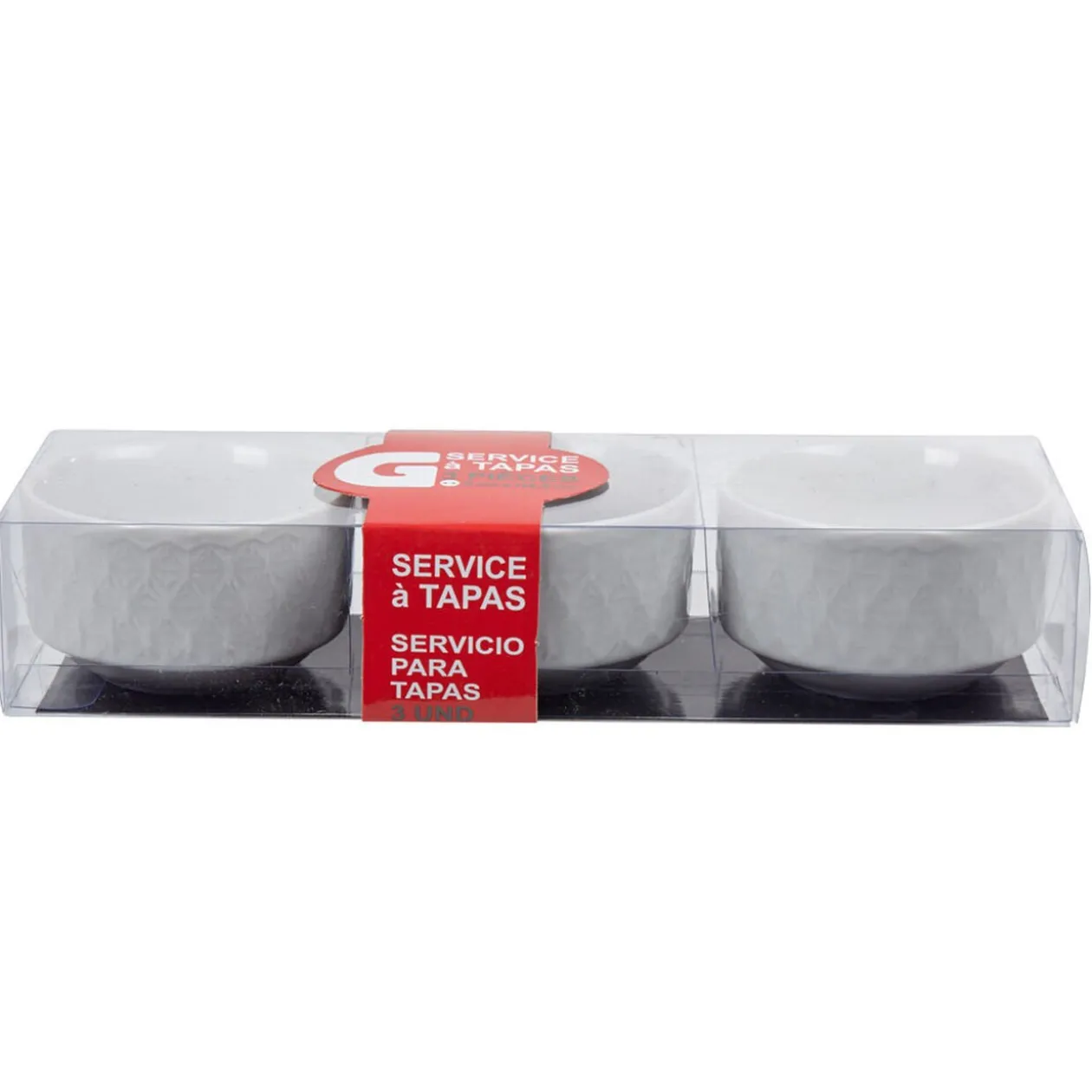 Service à tapas 3 pièces blanc à strie, dim. Ø8xh.4,5 cm, porcelaine.