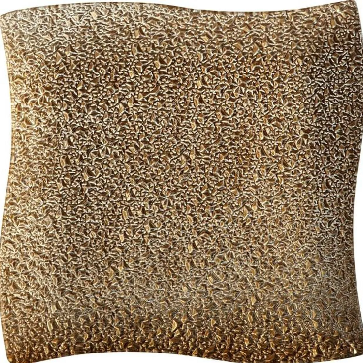 Service à vaisselle carrée de 18 pièces en verre bullé avec bordure dorée en forme de vague.