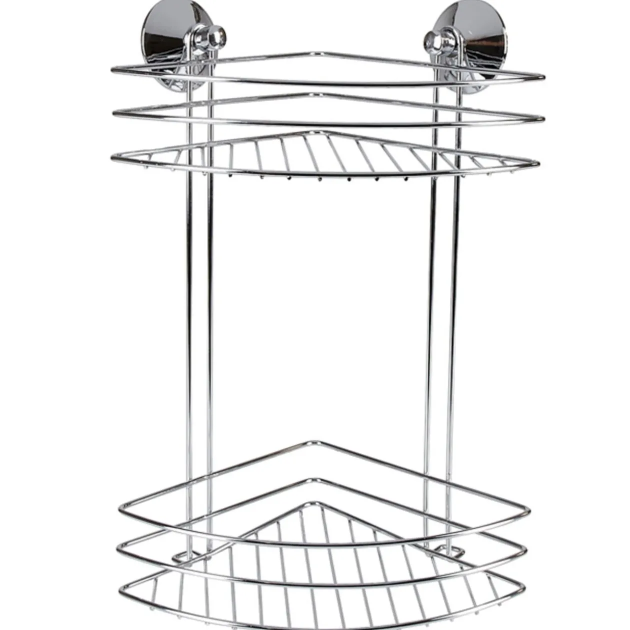 Serviteur d’angle à ventouses pour salle de bain, dim. 19xh.30 cm, métal