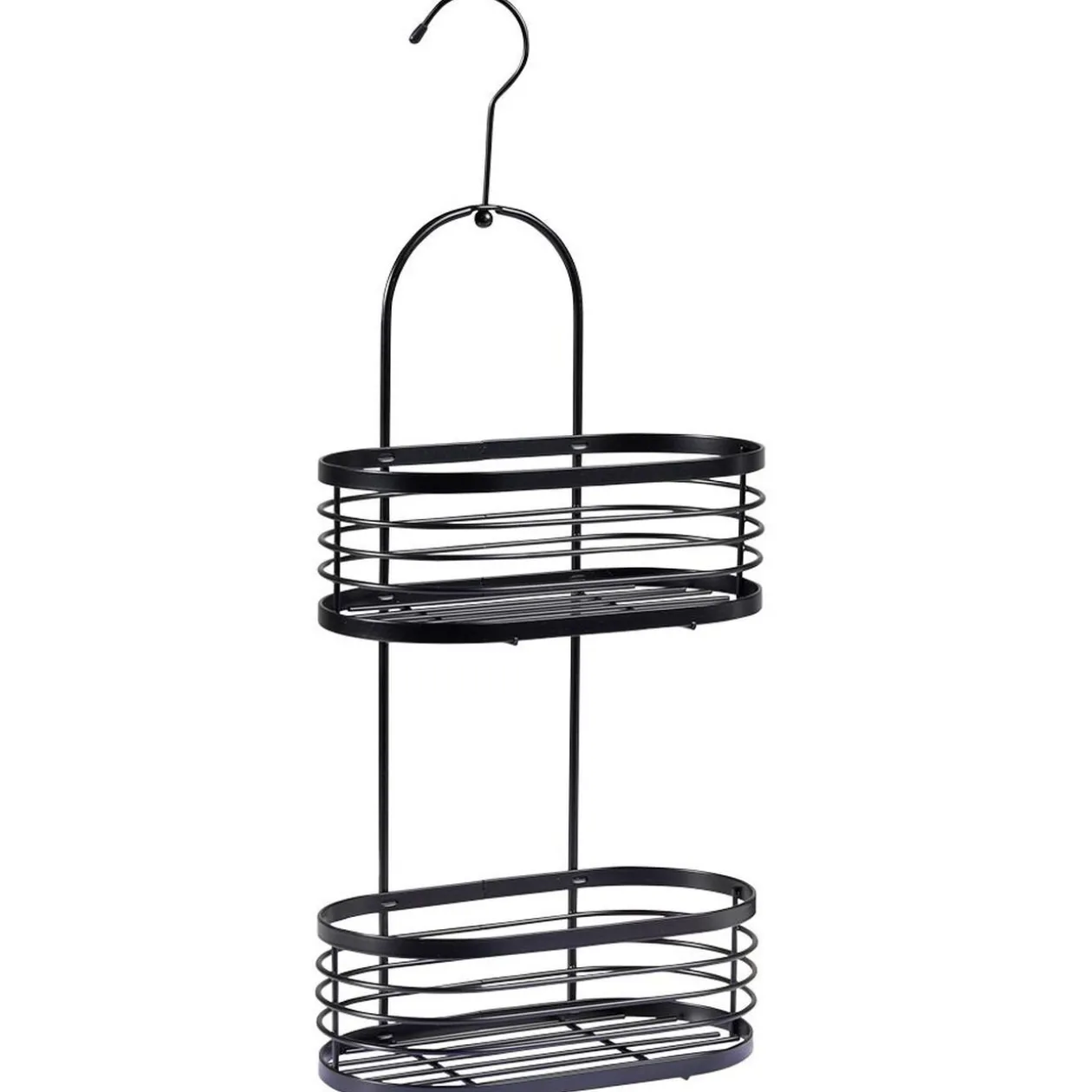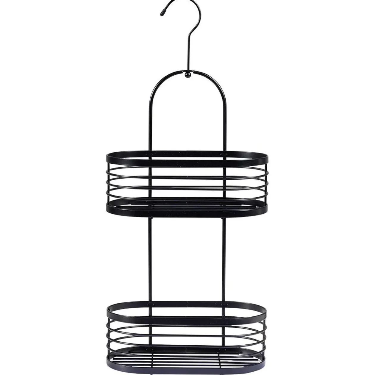 Serviteur de douche en métal noir à 2 niveaux. Décoratif et pratique pour garder son nécessaire de toilette à portée de main.