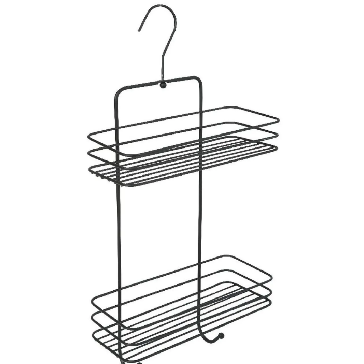 Serviteur de douche en métal noir mat composé de 2 panières et 2 crochets de suspension.