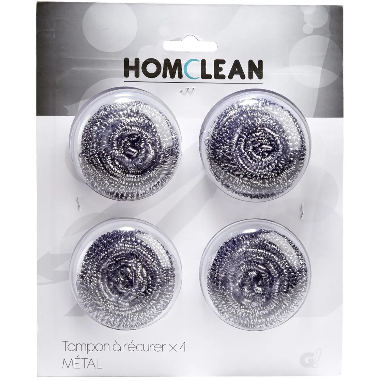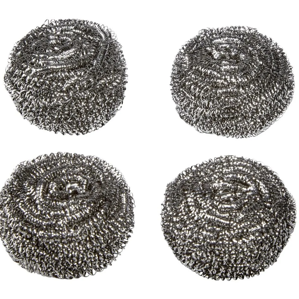 Lot de 4 tampons à récurer en forme de boule en inox.