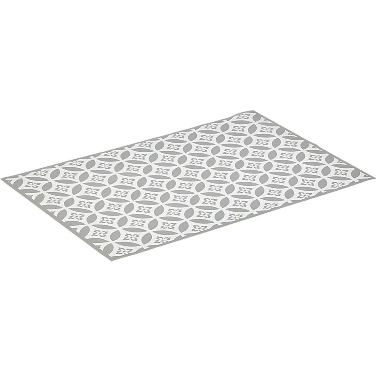 Tapis de cuisine en vinyle rectangulaire imprimé rosace blanc et gris.