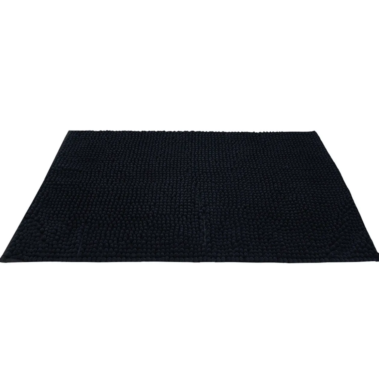 Idéal pour la salle de bain, ce tapis rectangulaire en chenille noir est doux, absorbant et facile à laver.