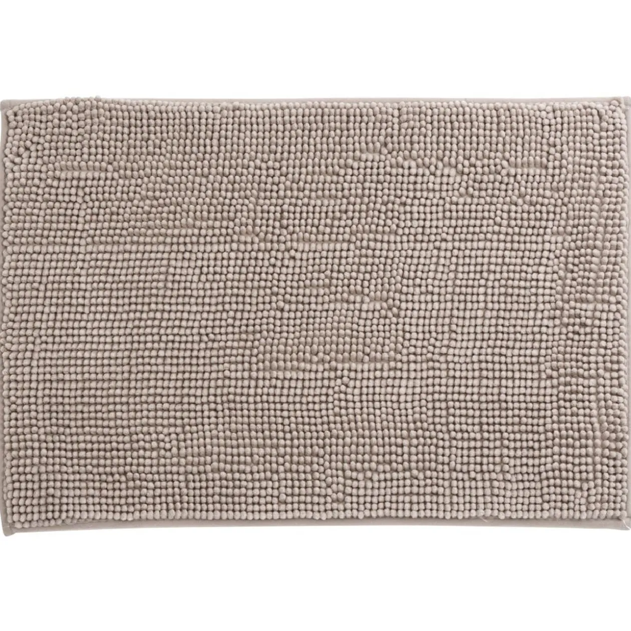 Tapis chenille en polyester uni taupe pour la salle de bain.