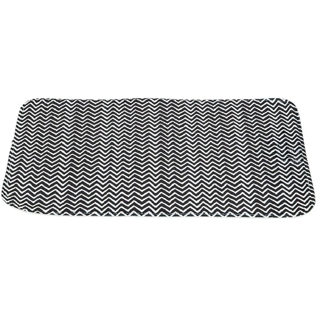 Le tapis de salle de bain existe en 4 différents modèles, selon disponibilité : blanc, marbré, zig-zag noir et blanc ou « good things take time ».
