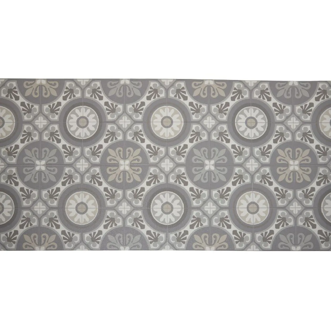 Tapis vinyle avec motifs carreaux de ciment, idéalement placé dans une cuisine, ou encore une salle de bain.