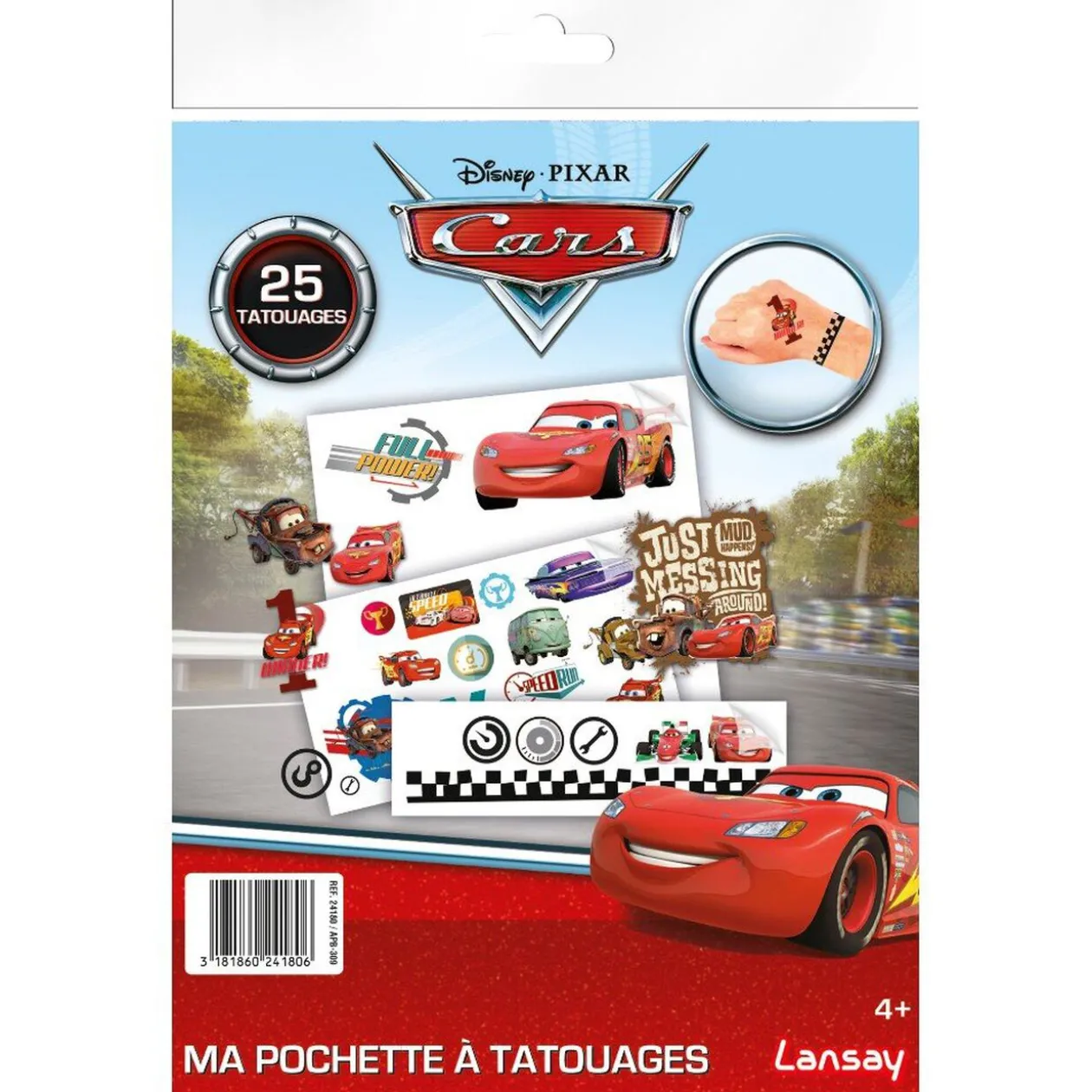 Pochette de 25 tatouages à l’effigie du dessin animé Cars.