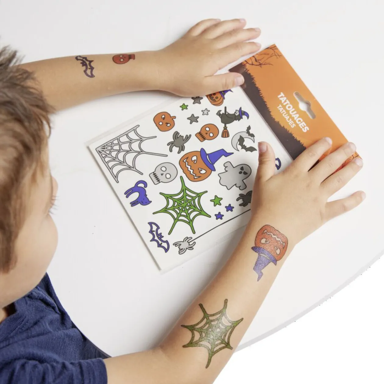 Assortiment de 14 tatouages éphèmères sur le thème de Halloween.
