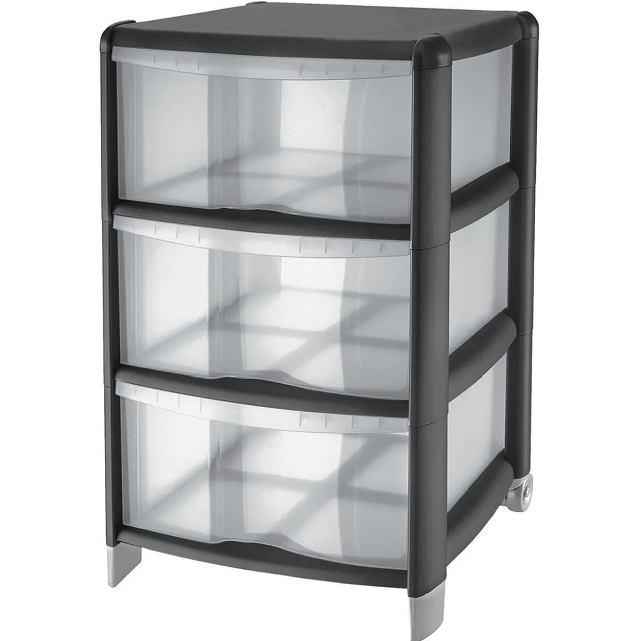 Très utile pour ranger tout en triant, cette tour de rangement munie de 3 tiroirs transparents sera parfaite pour oragniser un bureau, une buanderie, une chambre et tout autre pièce.