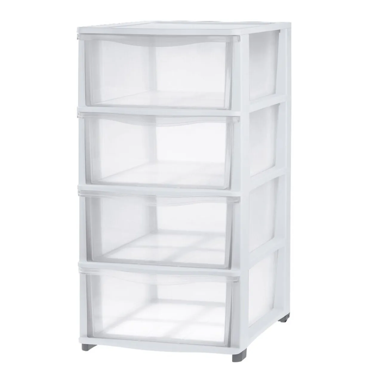 Maximisez votre espace avec cette tour de rangement en plastique blanc.