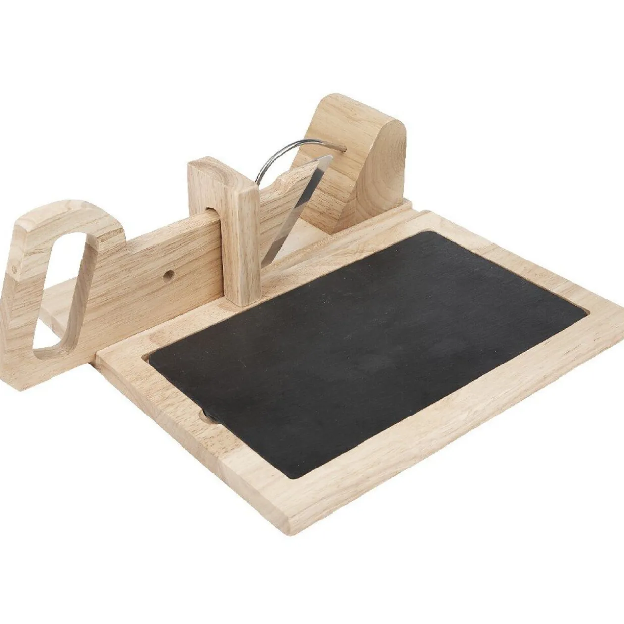 Trancheuse saucisson en bois avec plateau ardoise amovible.