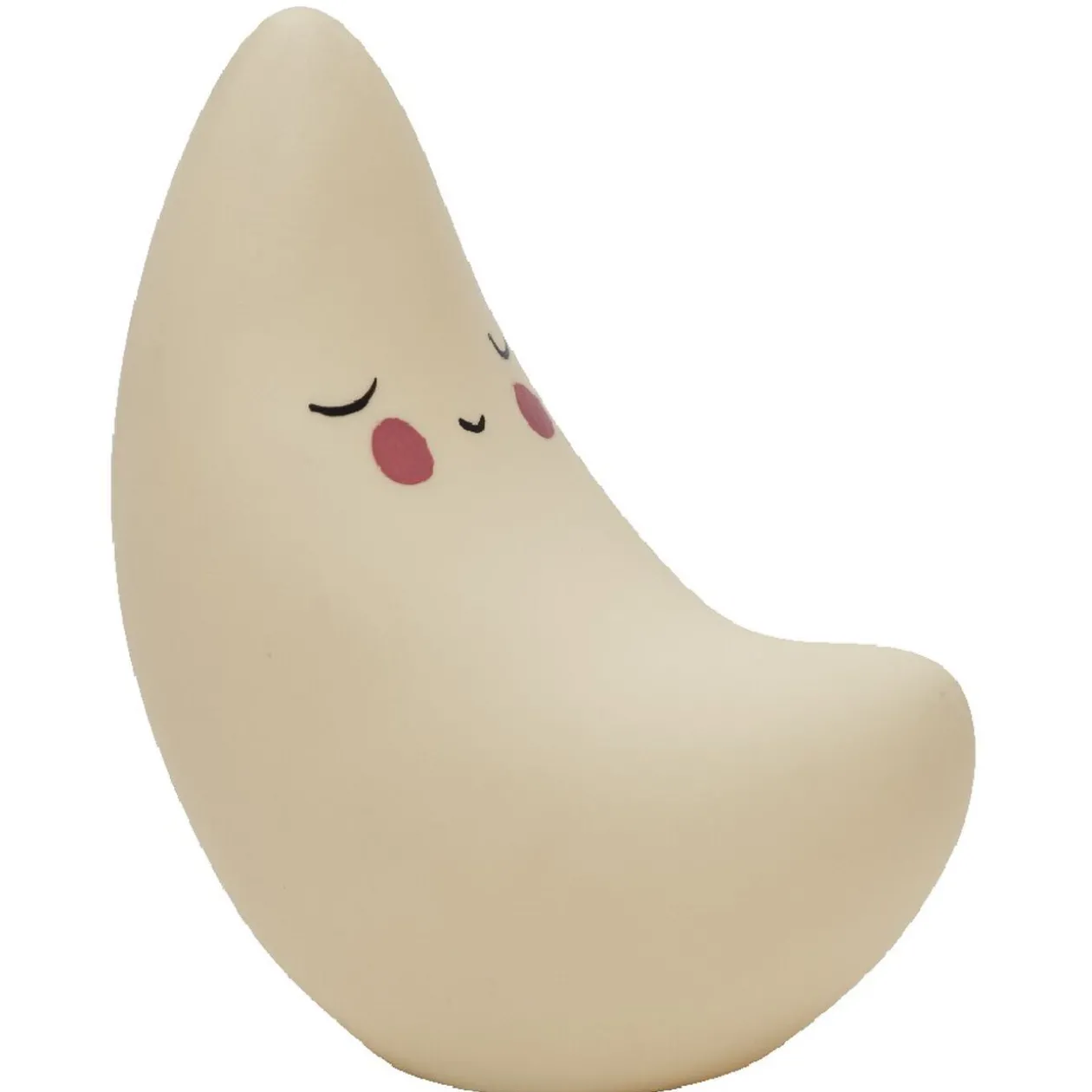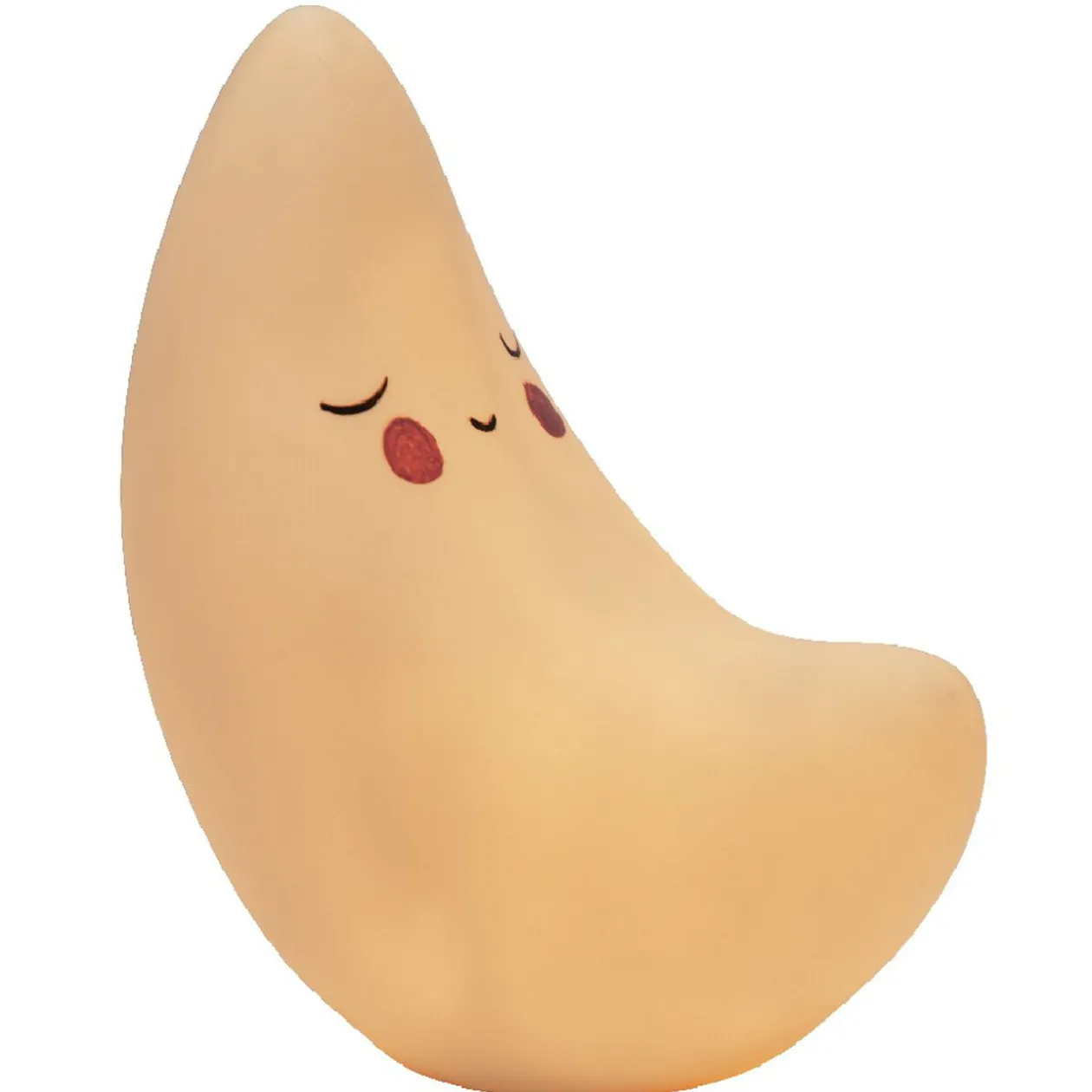 Veilleuse en forme de lune jaune avec mignon petit visage dessiné. Idéal pour rassurer votre enfant lorsqu’il s’endormira ou se reveillera pendant la nuit.