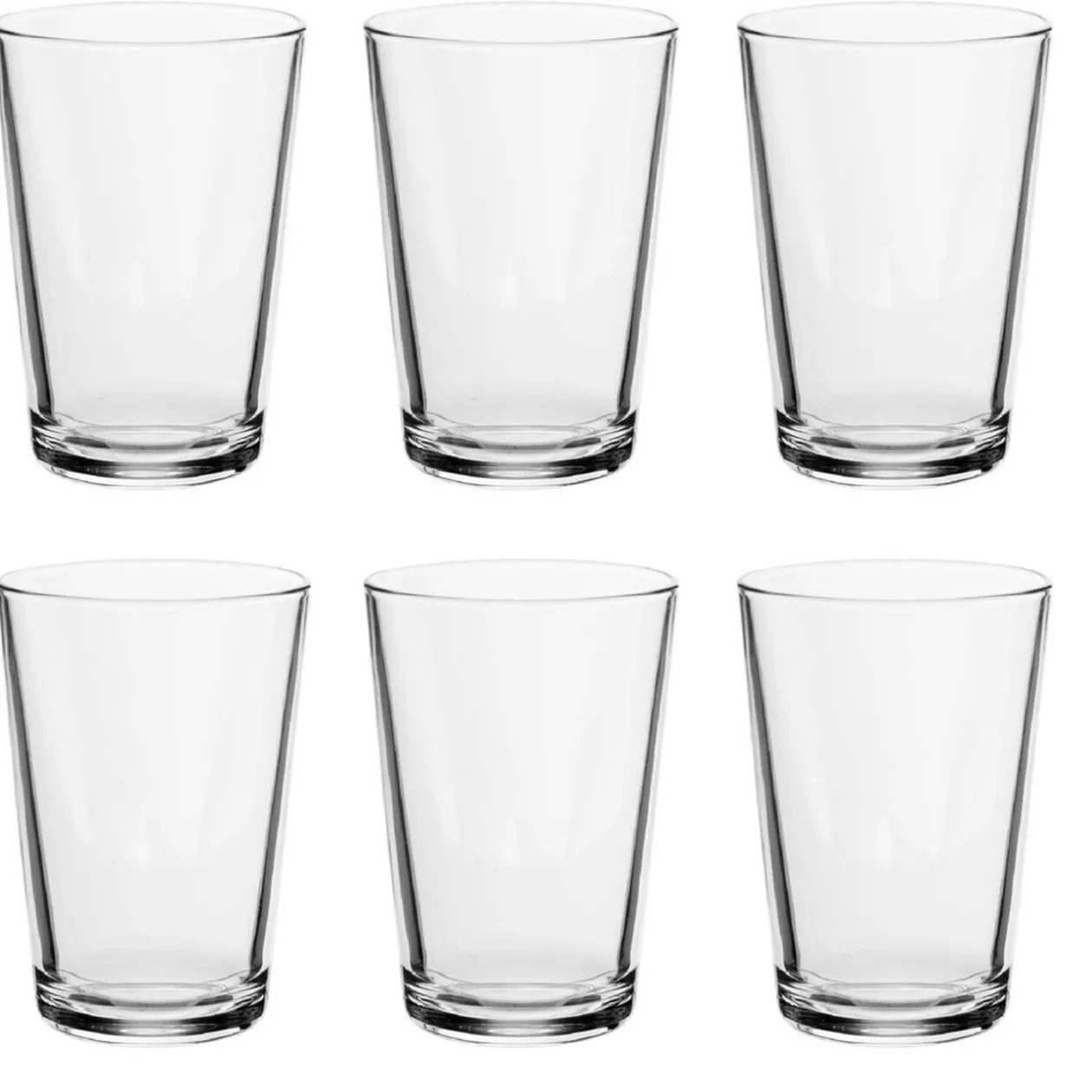 Lot de 6 verres haut transparents d’une contenance de 210 ml.