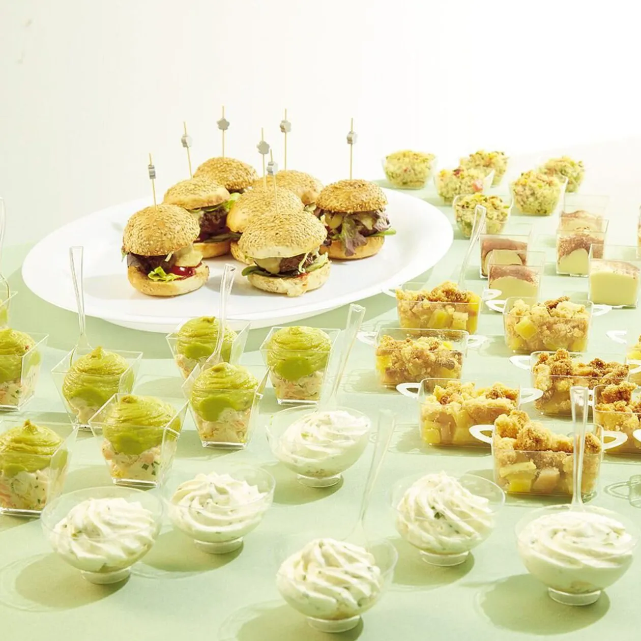 Lot de 50 verrines transparentes accompagnées de leurs mini-cuillères.