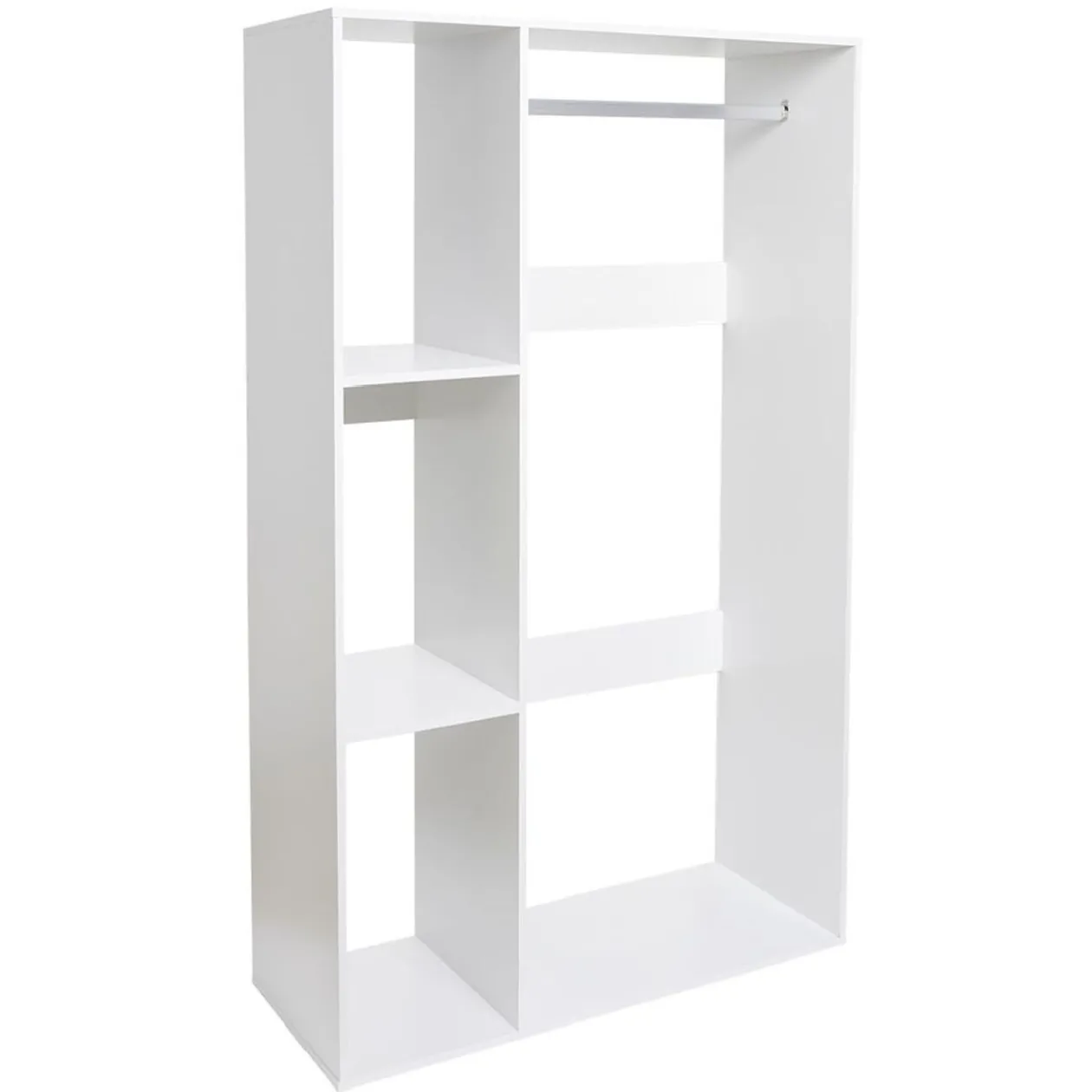 Vestiaire en bois blanc permettant de suspendre vos vêtements pour ne pas les froisser et d’en ranger certains dans les casiers prévus à cet effet, pour un rangement efficace sans prendre trop de place.