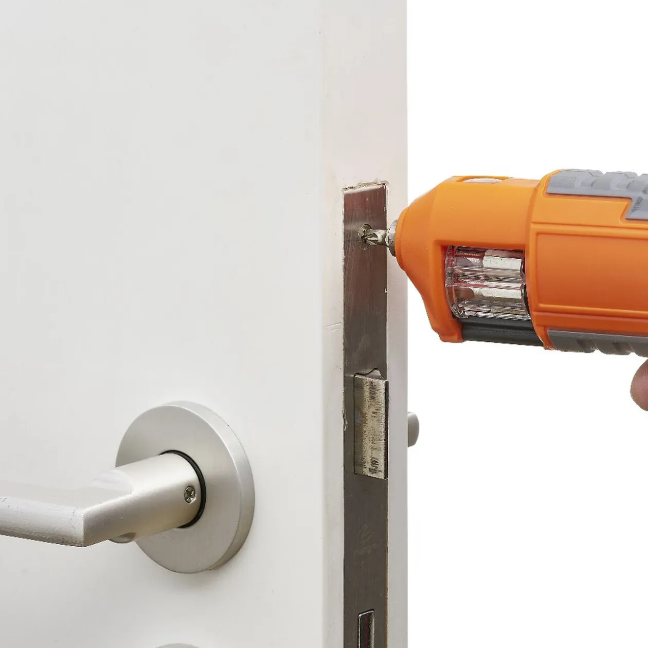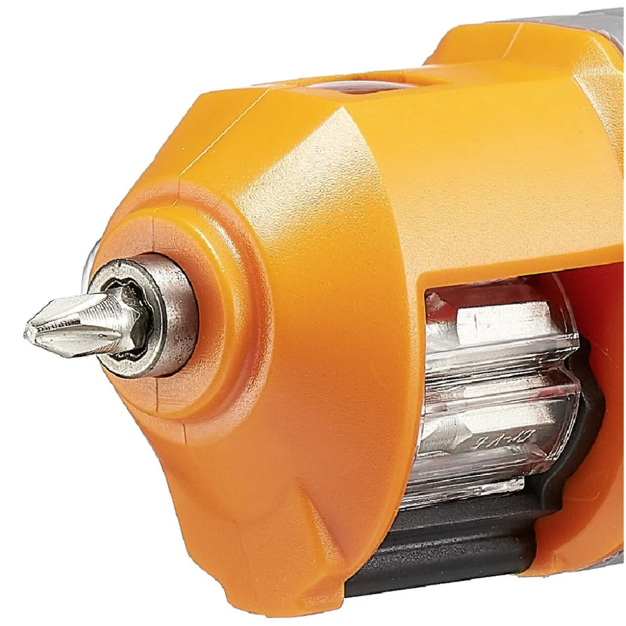 Visseuse sans fil Profilex multi-embouts de couleur orange et noire.